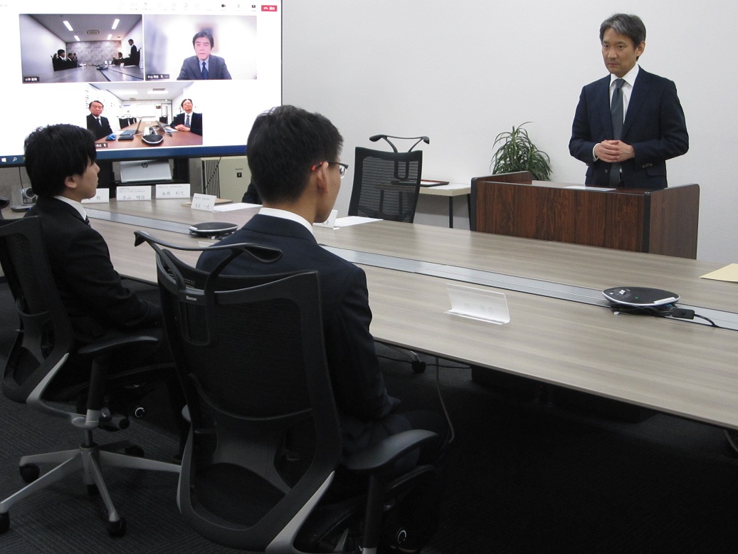 式では、辻花社長より温かい激励のお言葉をいただいた後、内定証書の授与が行われました。